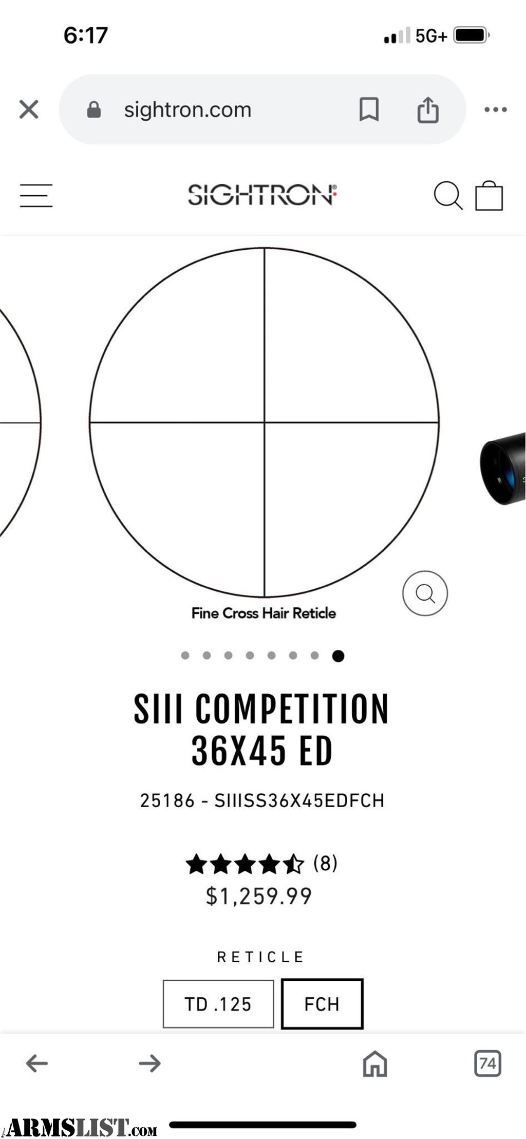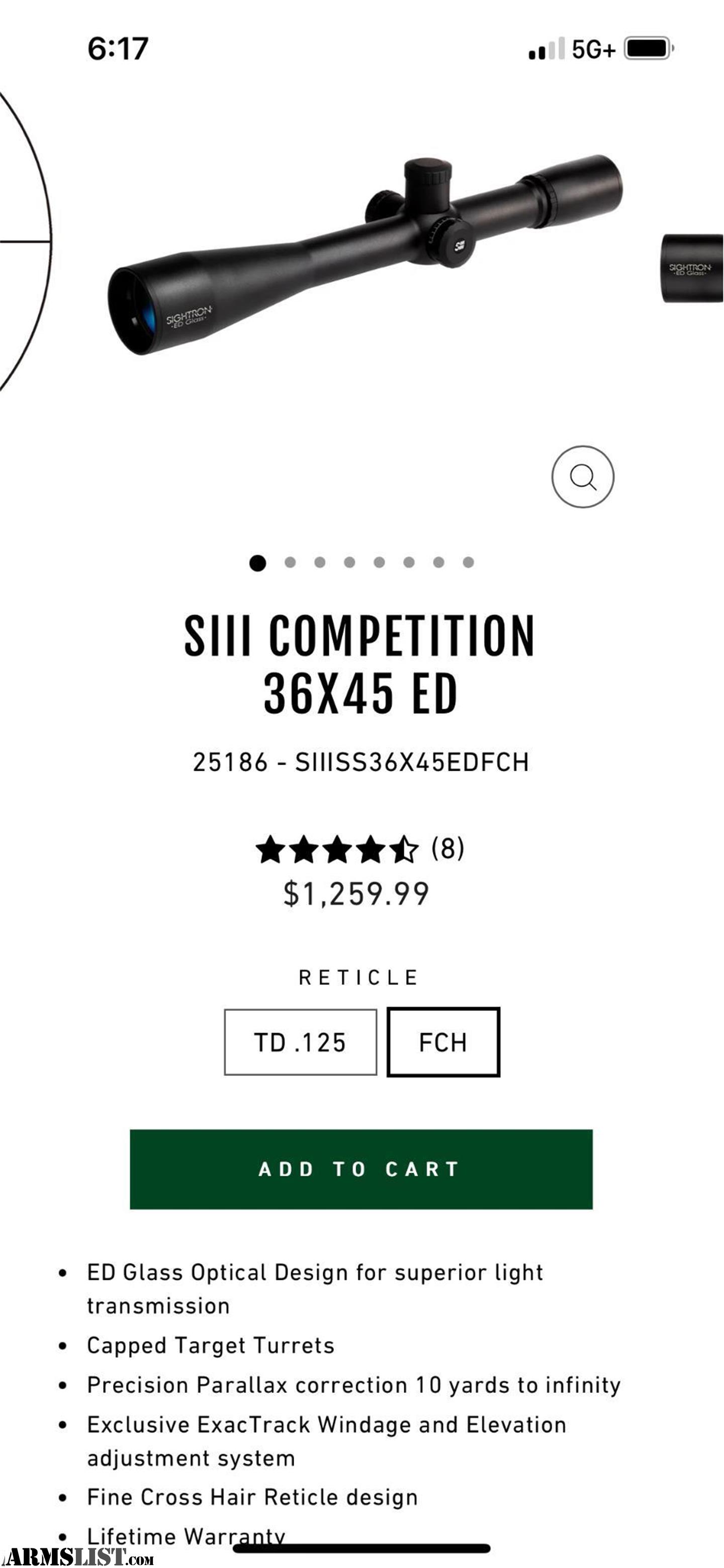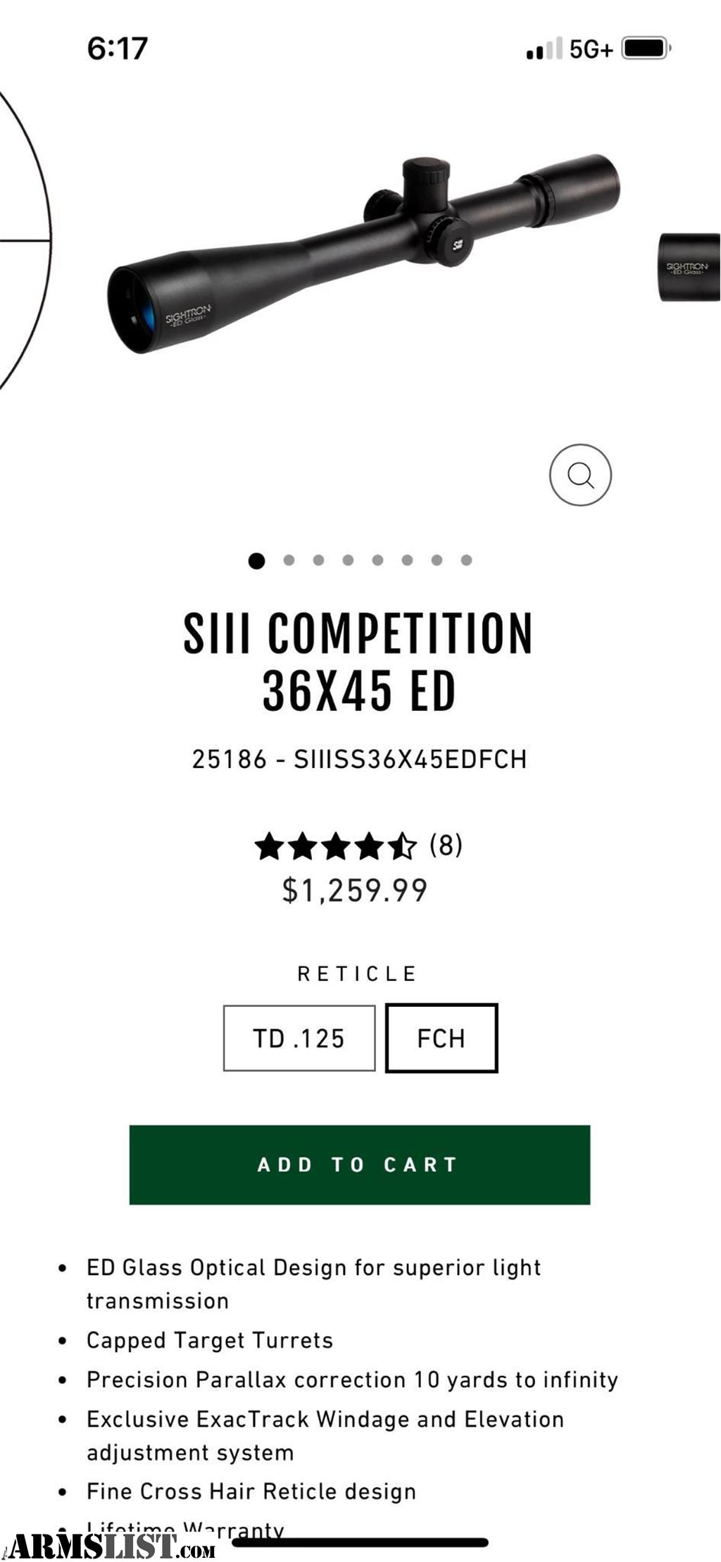 Sightron Competition SIII series 36x45 mm fine crosshair reticle 0.1 mil elevation & windage adjustment comes with sunshade flip-up covers box & all original contents 5869959351