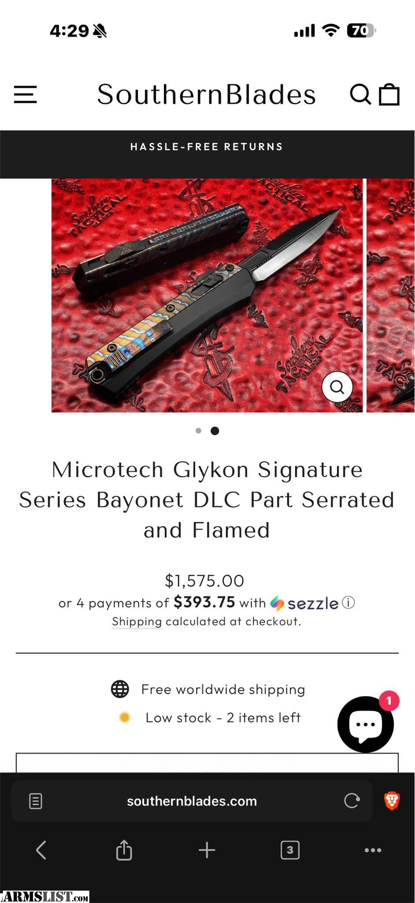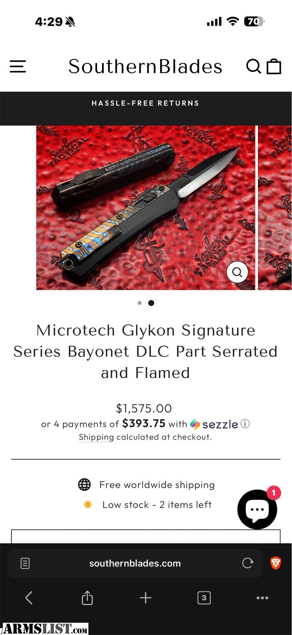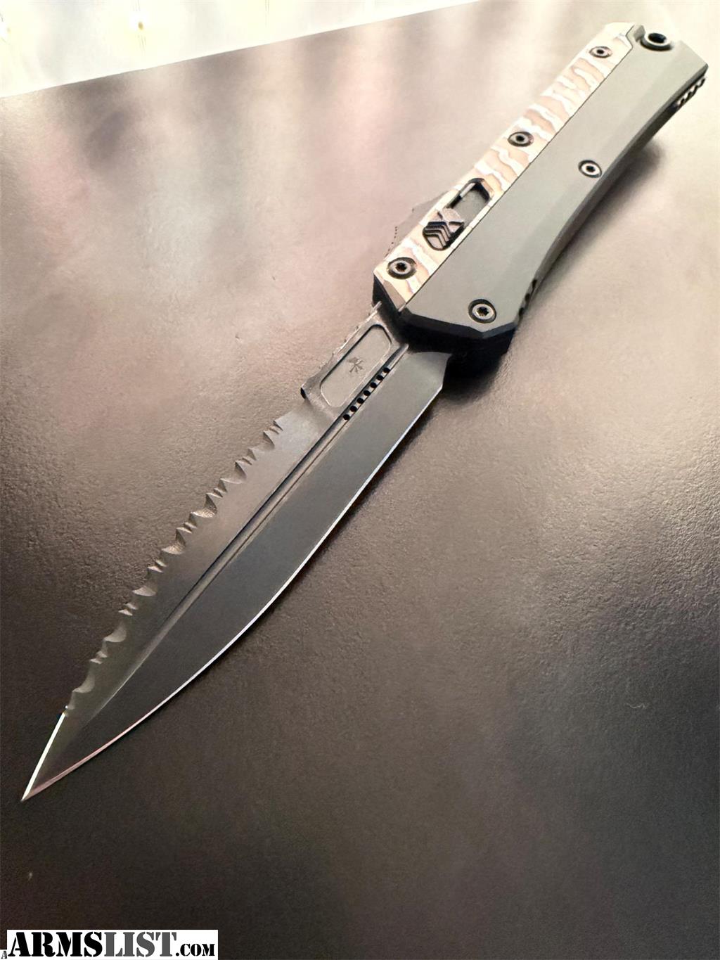Microtech Glykon Signature Series Bayonet DLC Part Serrated Blade with Flamed Titanium/ Aluminum Body Introducing the Microtech Glykon, a masterful blend of advanced engineering and striking design. This exceptional knife stands out with its meticulous craftsmanship and cutting-edge features, making it a premier choice for those who demand both style and performance.