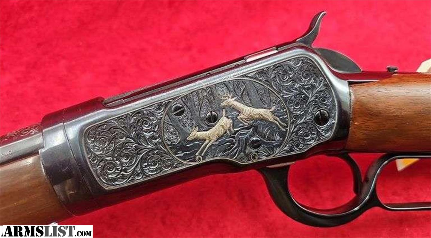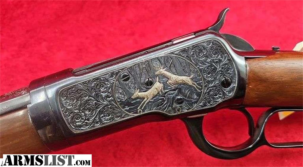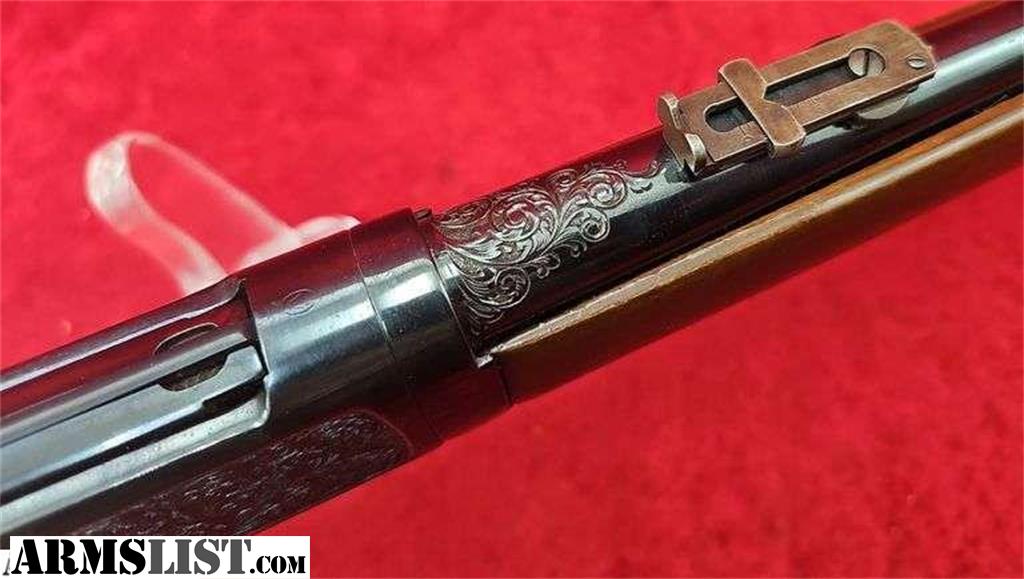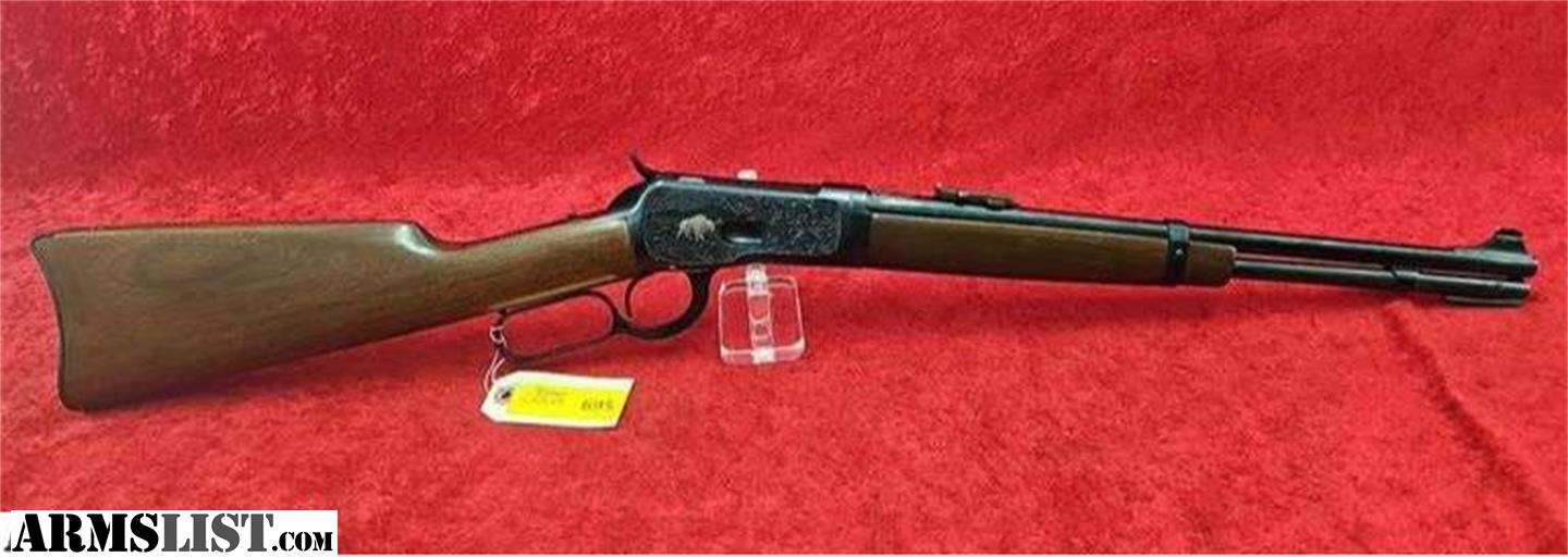 16 1/4" takedown bbl., chambered in 357 Mag, has ornate engraved and decorated receiver with silver deer and buffalo, plain walnut stock, gun has some blue loss and spots at bottom of lever and receiver. Otherwise an attractive Winchester. Bid Now at kramersales.com! This Gun is up at auction on our April Emporium Guns & Sporting Sale! All guns on this auction start @ $1 & sell without reserve. This Auction Closes on Thursday Apr. 23rd 8am CST, click Here or go to our website for more info! 1,800+ Lots! Guns by Winchester, Remington, Colt, Marlin, Ruger, Smith & Wesson, thousands of rds. factory ammo, Reloading components & machines, Military Collectibles, Taxidermy, Knives, & related antiques! Bid Now!