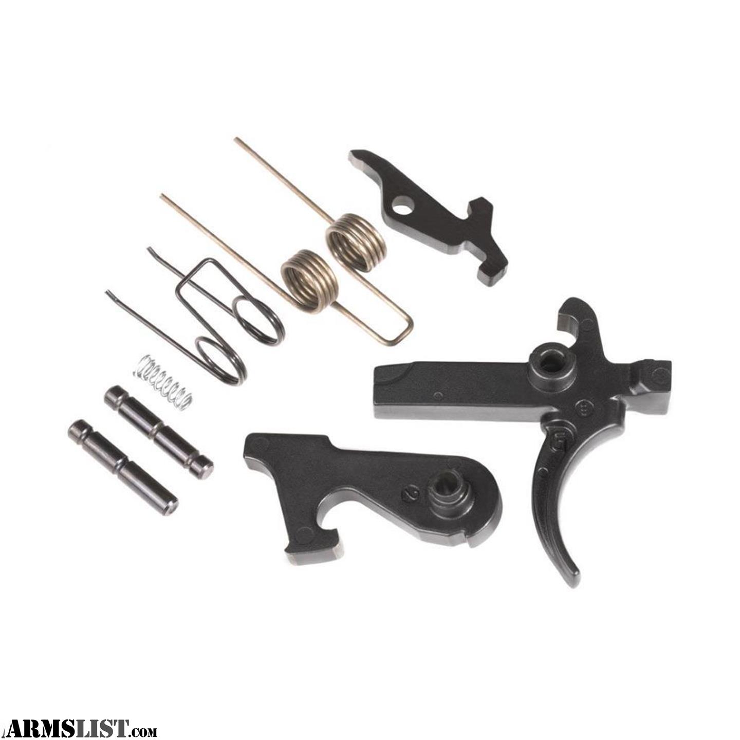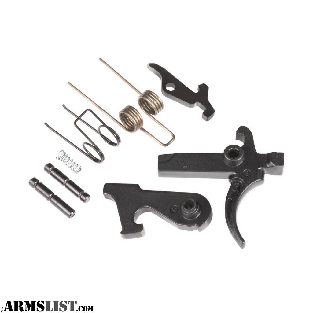 PLATFORM: AR15/AR10 TYPE: 2 Stage 1st STAGE WEIGHT RANGE: 2.75 - 3 lbs. 2nd STAGE WEIGHT RANGE: 1.5 - 1.75 lbs. TOTAL PULL WEIGHT RANGE: 4.25 - 4.75 lbs. ADJUSTABLE: No TRIGGER BOW TYPE: M4 Curved PIN SIZE: Mil-Spec