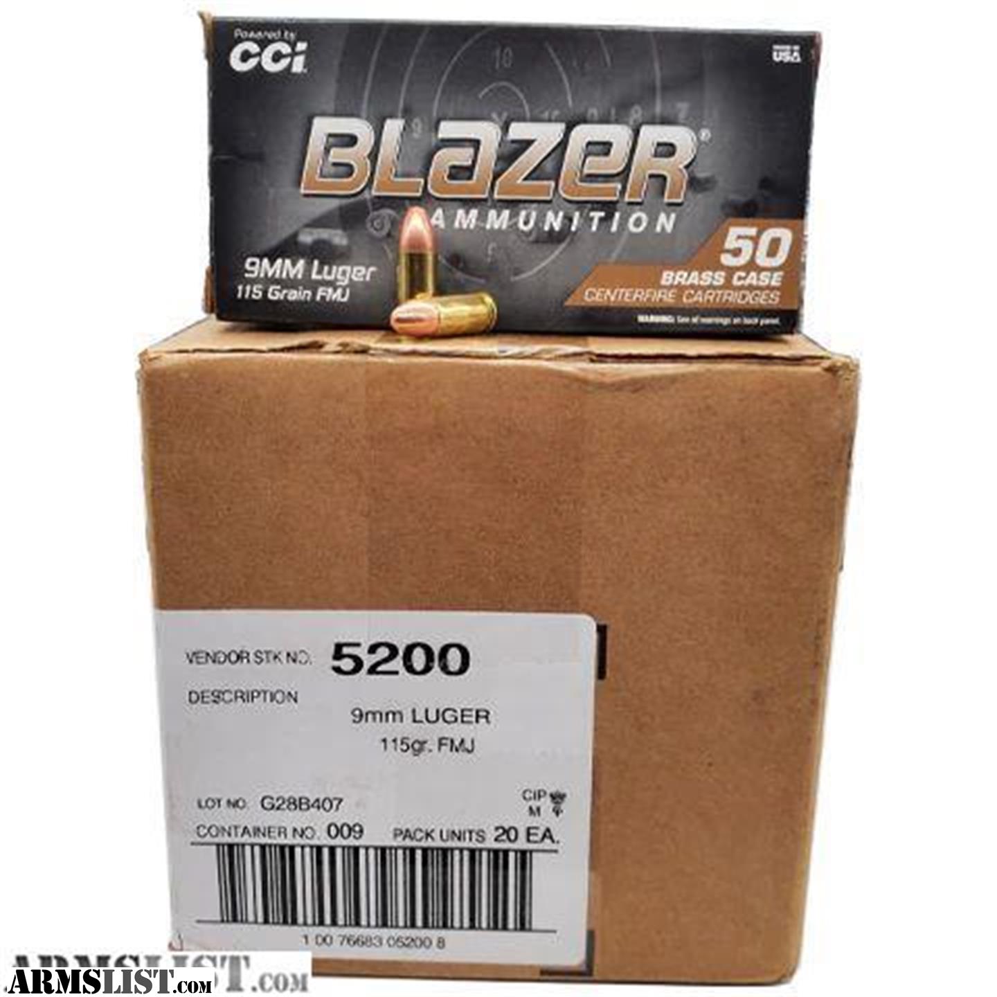 CCI Blazer Brass 9mm Luger 115 Grain Full Metal Jacket 1,000 Round Case