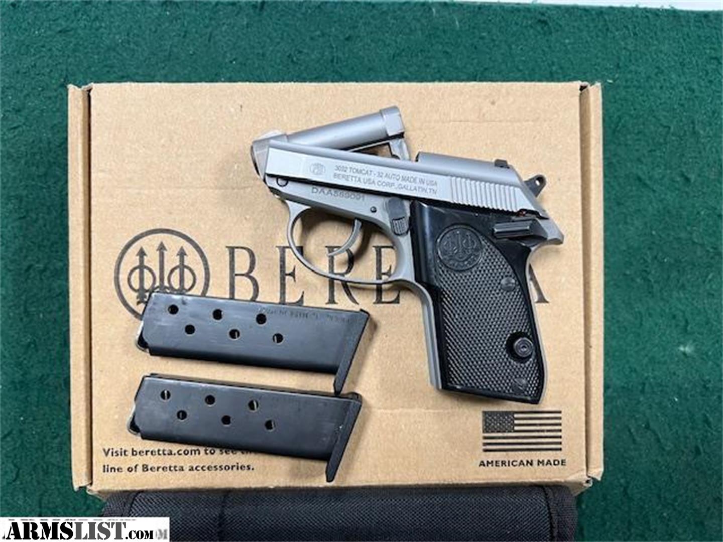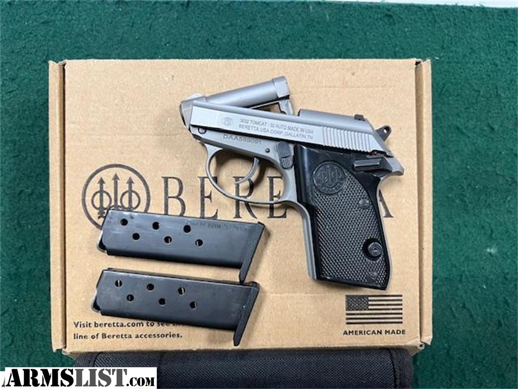 Used Beretta 3032 Tomcat Inox Pistol, .32acp, 7 Rds, 2 Magazines, Pistol Pouch, Original Box