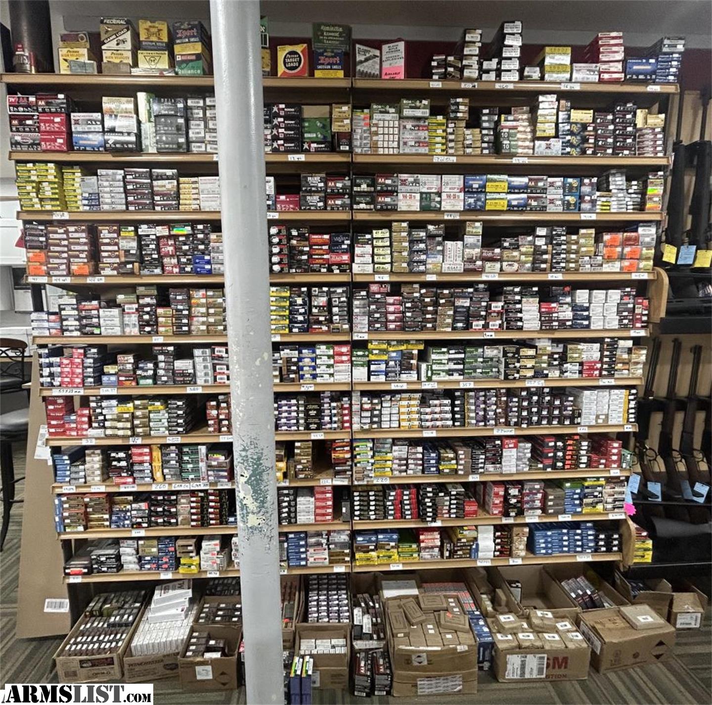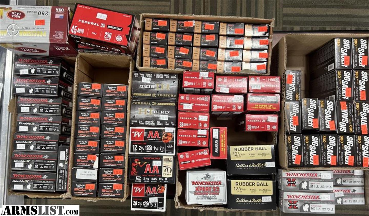 Here at Dad's Guns and Golf Carts we have all sorts of ammo! From common calibers like .22LR, 5.56, and 9mm to uncommon calibers like .25-06 to 375 H&H. We often have a wide selection of surplus caliber ammo , new and old production. We also have a wide range of shotgun shells, .410 up to 10ga. Feel free to ask about any caliber, gauge, or load because chances are we may have it!