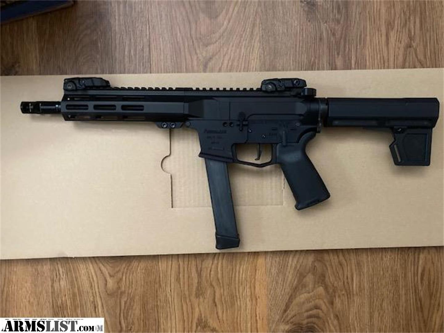 This Armalite 9mm AR-style pistol comes with the collapsible brace and a 30 round Glock pattern mag as well as Mag-Pul flip-up sights.It has never been fired. Not interested in trades.Text only 864-788-6017