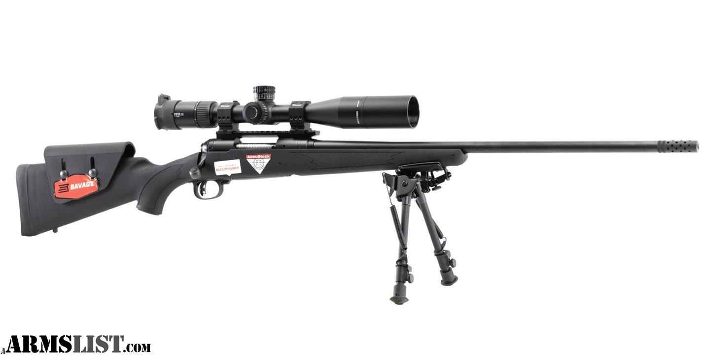 This Savage Model 11 features a 24" barrel with a muzzle brake, drilled & tapped receiver, Savage Accu-Trigger, magazine fed bolt action, manual tang safety, sling studs, and has a checkered rubber finished 3D bedded Accu-Stock with an adjustable comb and soft recoil pad. Comes with one magazine, and the preinstalled Vortex Viper PST 3-15x44mm Scope & Bipod.