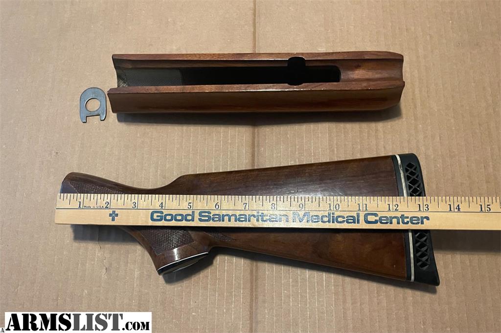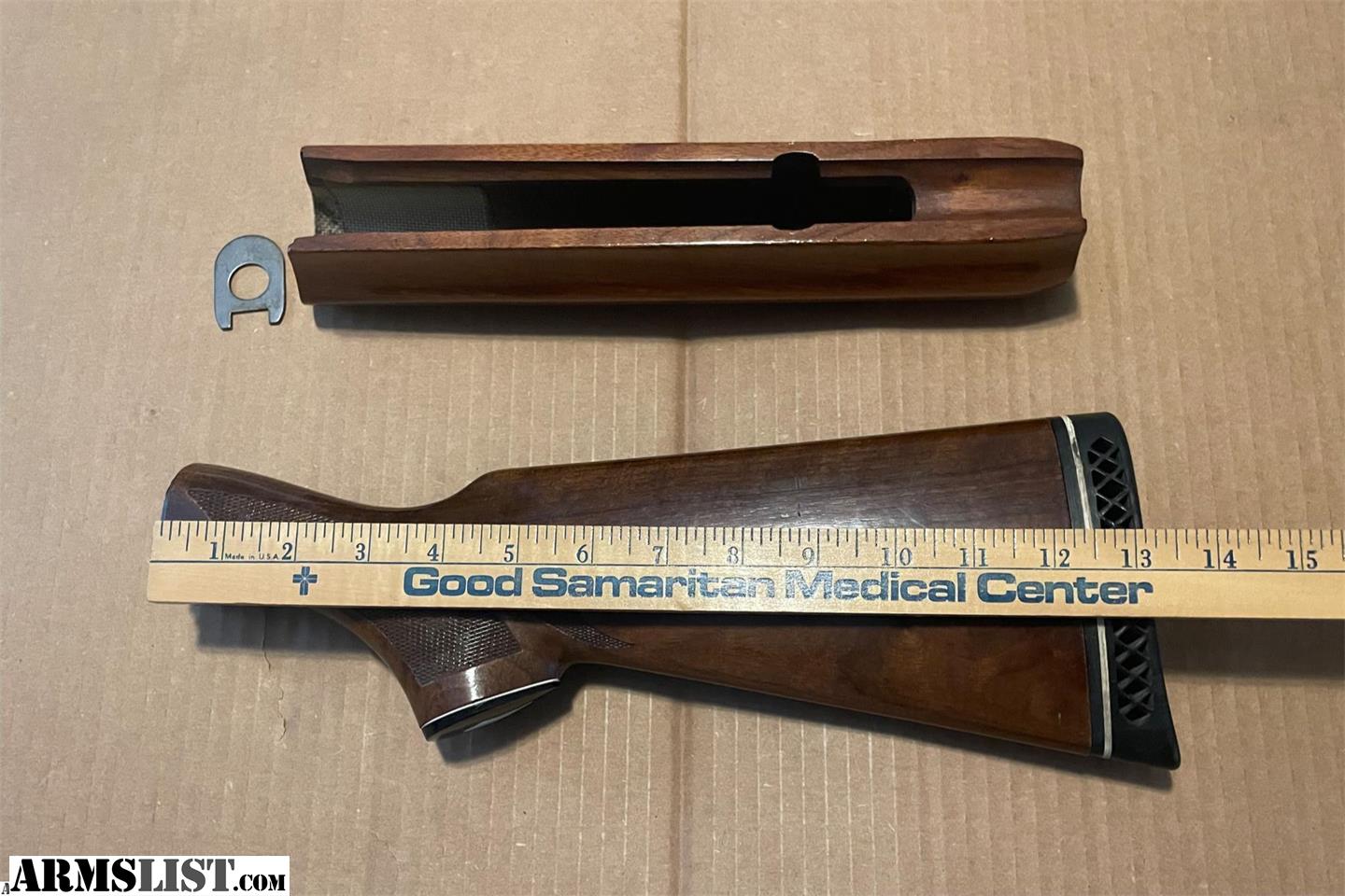 This field stock set is for a Remington 1100 12 gauge. It has the old dupont finish on it. Comes with bearing plate in case you are switching from plastic to wood.