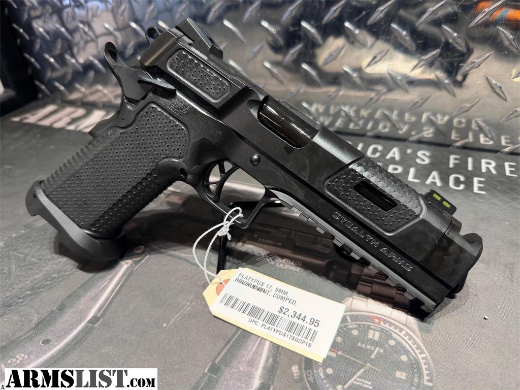 Platypus 17 CS4Q Caliber: 9mm Barrel Length: Government (5") Magazine Type: Glock Style: Tactical Trigger Guard: Square Dust Cover: Full Length / Extended Side Grip: Prickle Rear Grip: Prickle Grip Style: Prickle Grip Size: Small Slide Style: Prickle Trigger Style: Straight Sight Type: Fiber Optic Sight Height: Standard Optic Cut: SRO/RMR Barrel Type: Integrated Compensator Threaded Barrel: Non-Threaded Mag Funnel: Funnel Thumb Safety: Ambi-Safety Trigger Weight: 3.0-3.5 lbs Compensator Type: Single-Port Dual Compensator Style: Blank