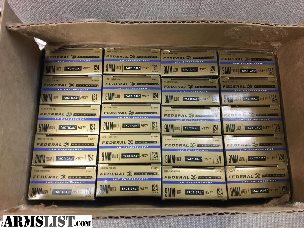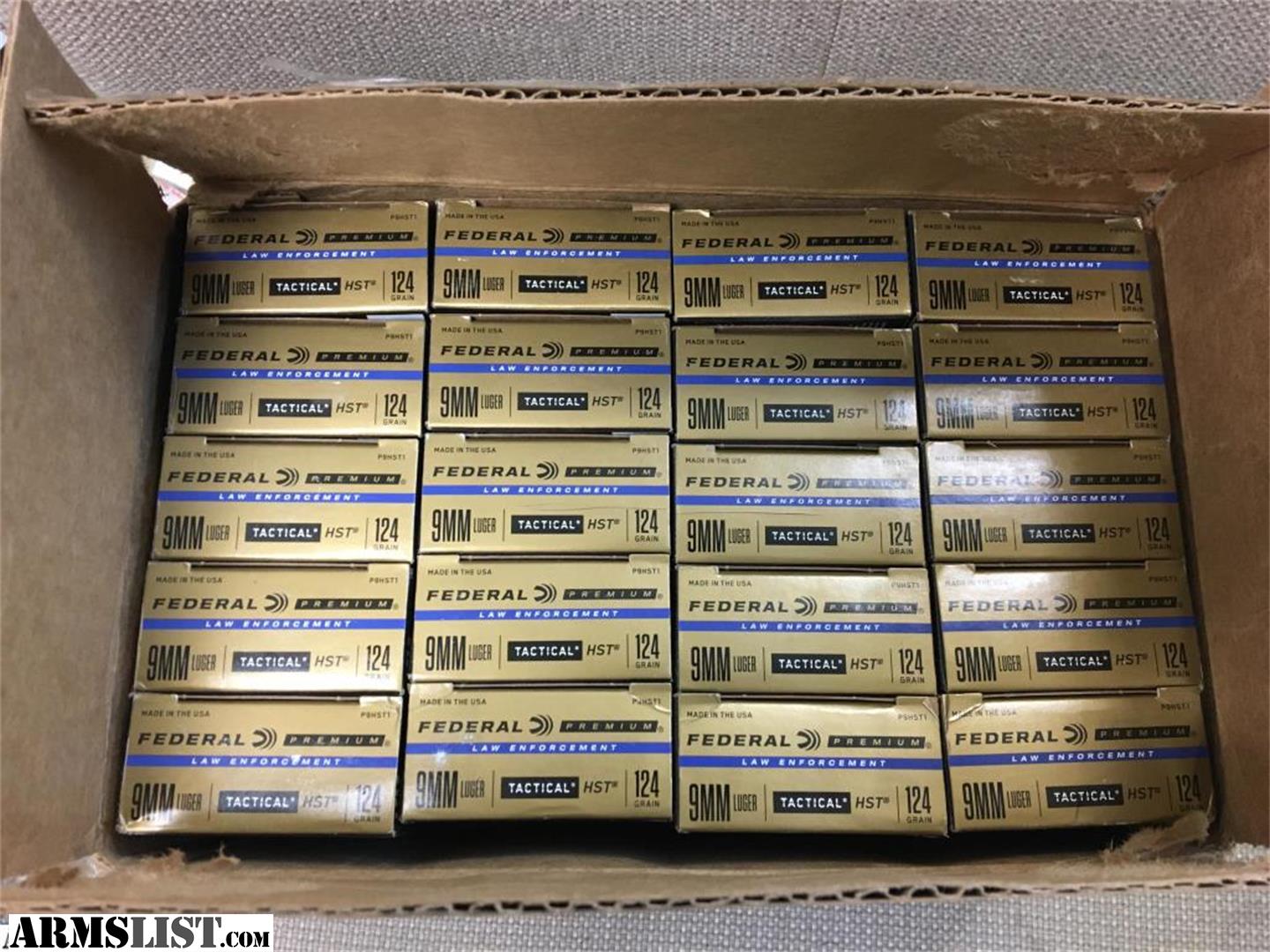 I have Federal LE 9mm HST 124gr available. 50 rd box.$100 each - $1700 on the entire casesales@goingquiet.com