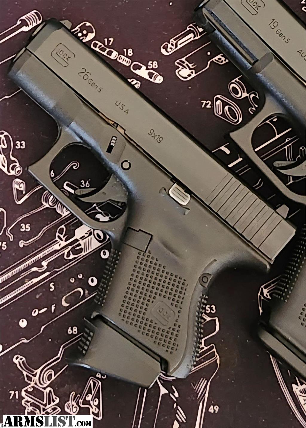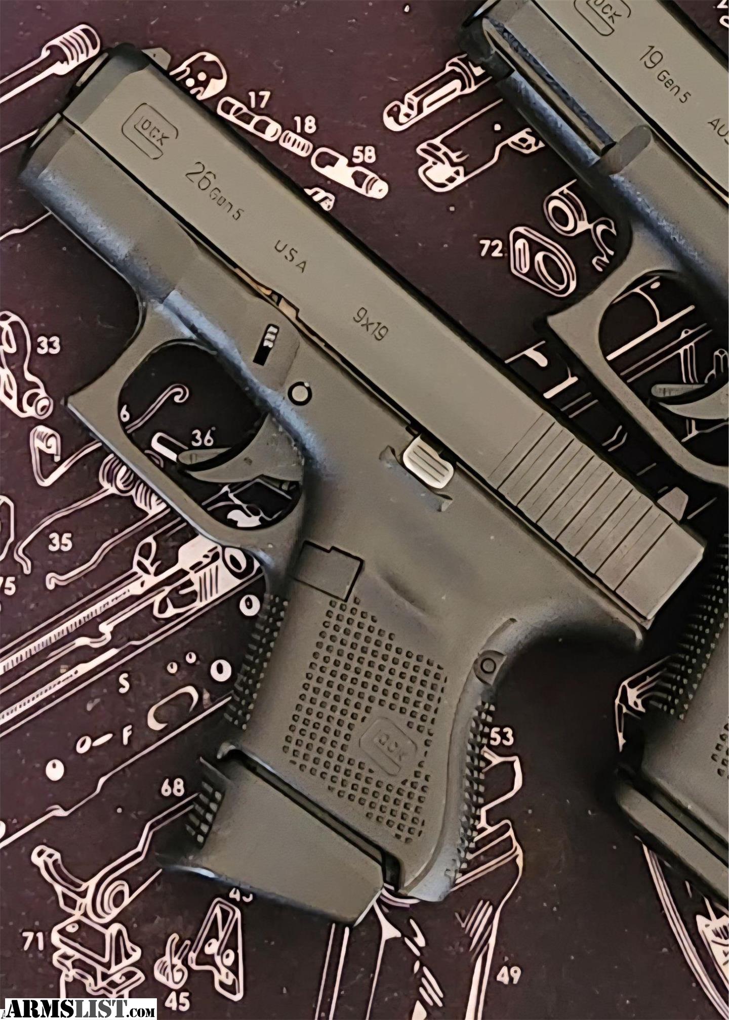 Unfired early Gen 5 smooth, non mos glock 26.All factory items included with case.3 mags all have pierce +2 extensions and original baseplates