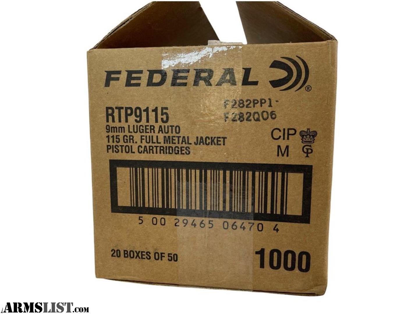 Federal RTP9115 Range and Target 9mm Luger 115 gr Full Metal Jacket (FMJ) Brass Case 1000 Round Case
