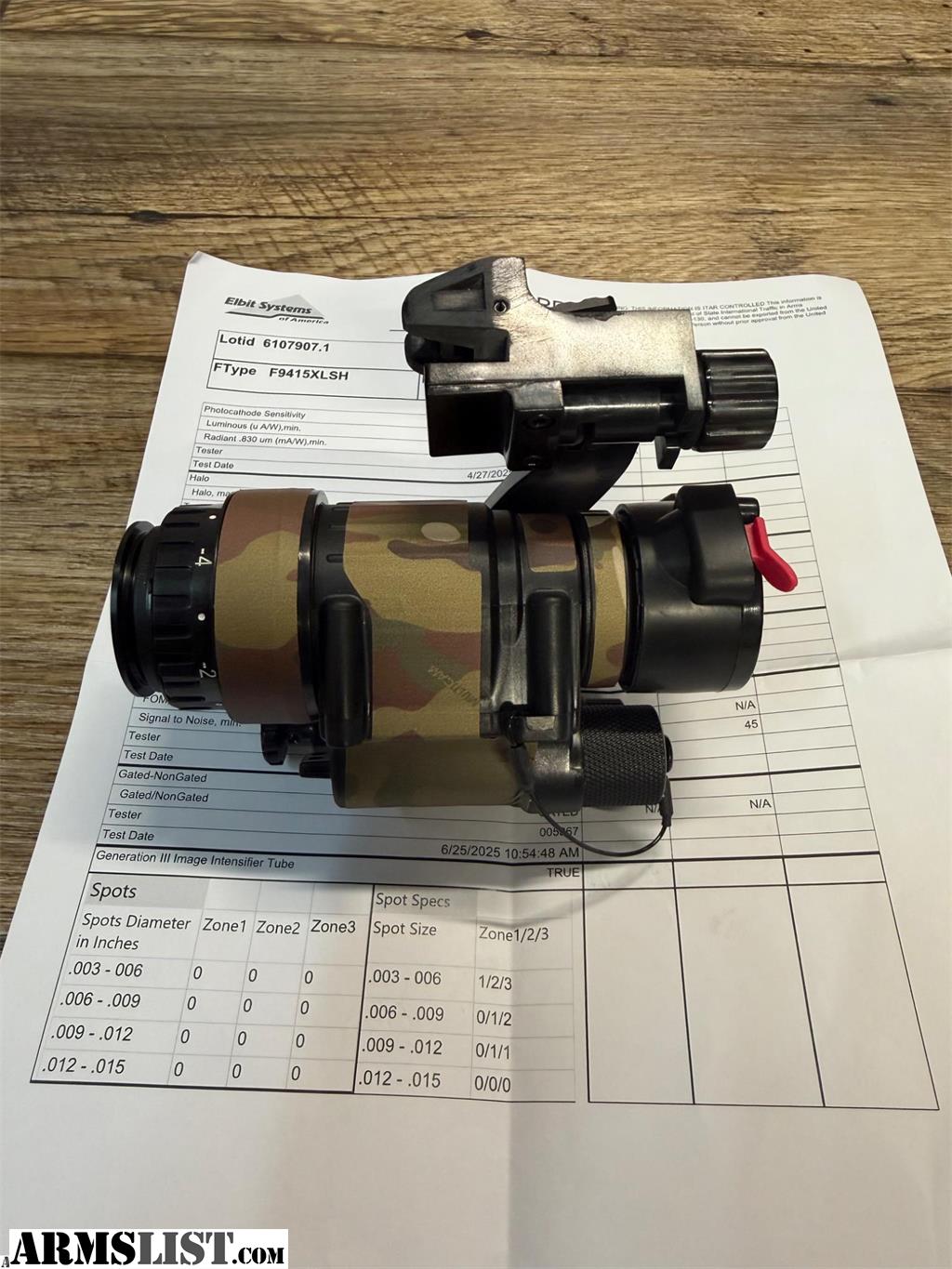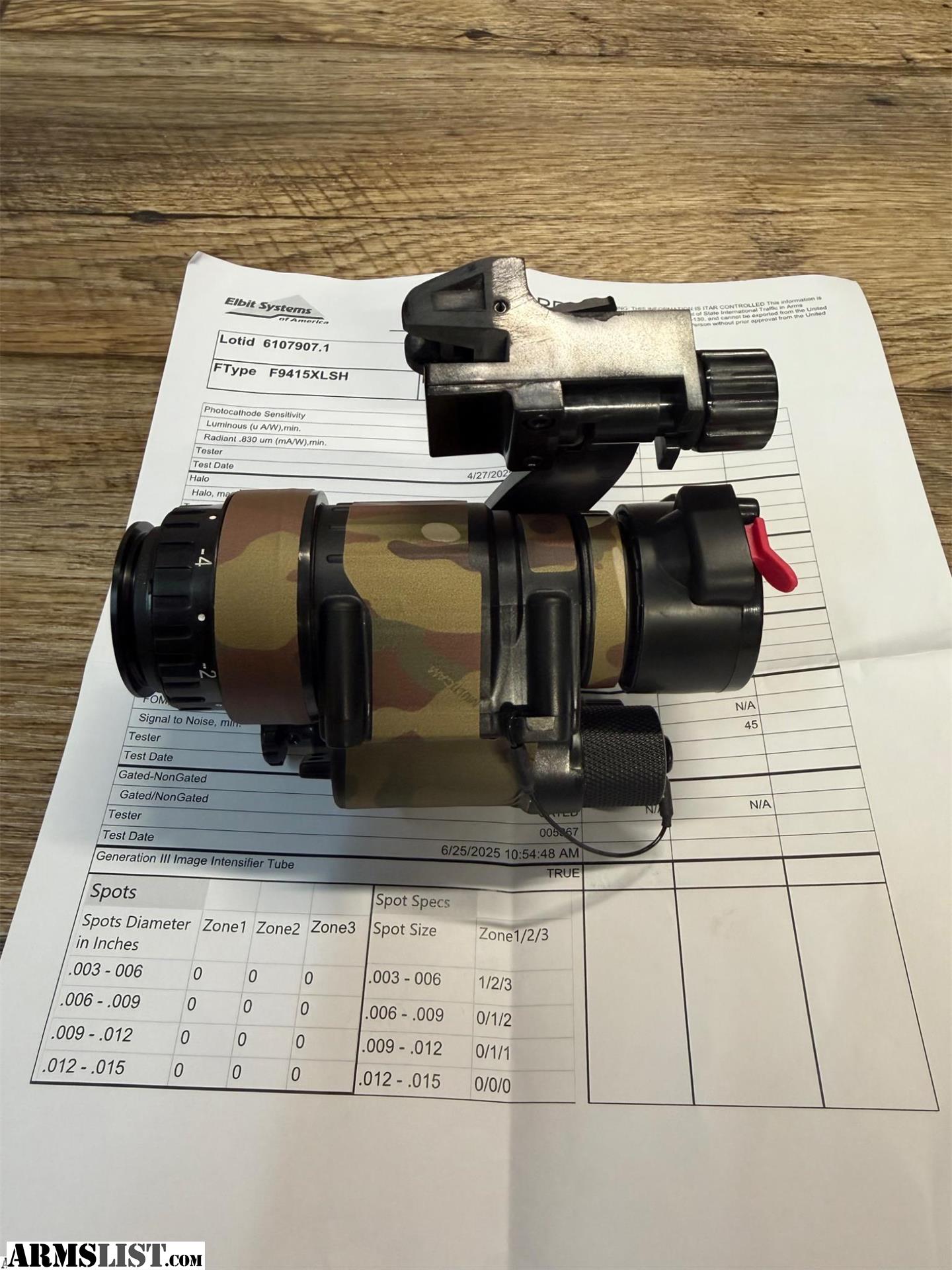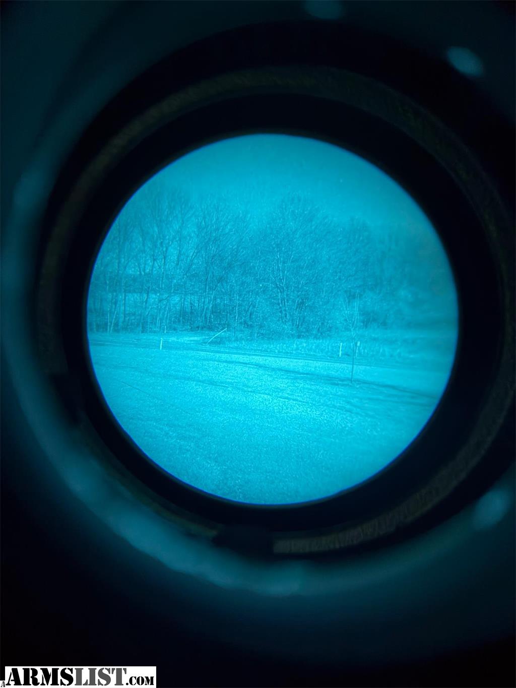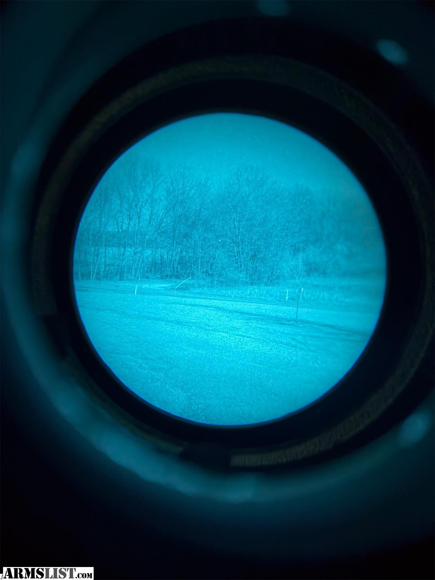 I have a lightly used Elbit White Phosphor Gen 3 PVS14. Has about two hours of run time on the tube. Was purchased new about two months ago. Has a slight hairline running from about the 8 o’clock to the 6 o’clock position. Most notable on the concrete picture.