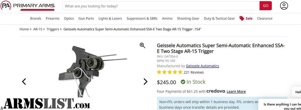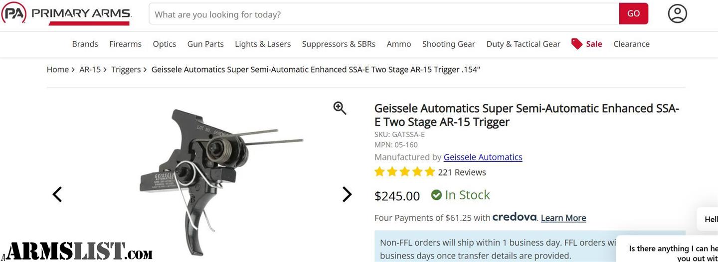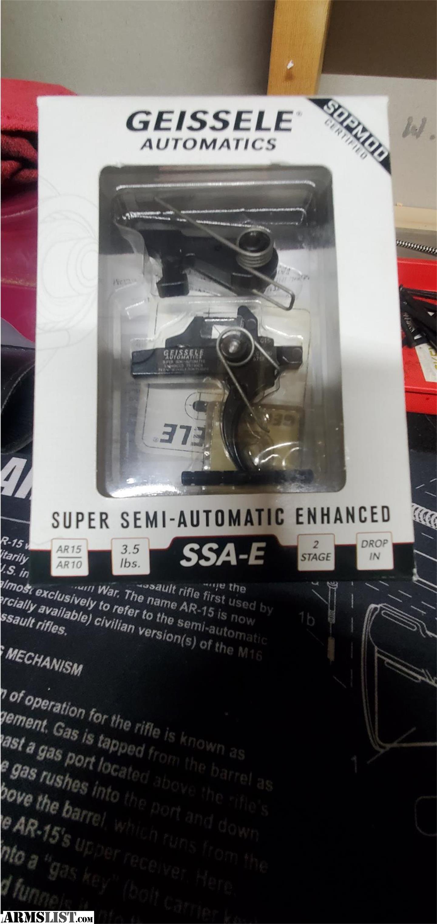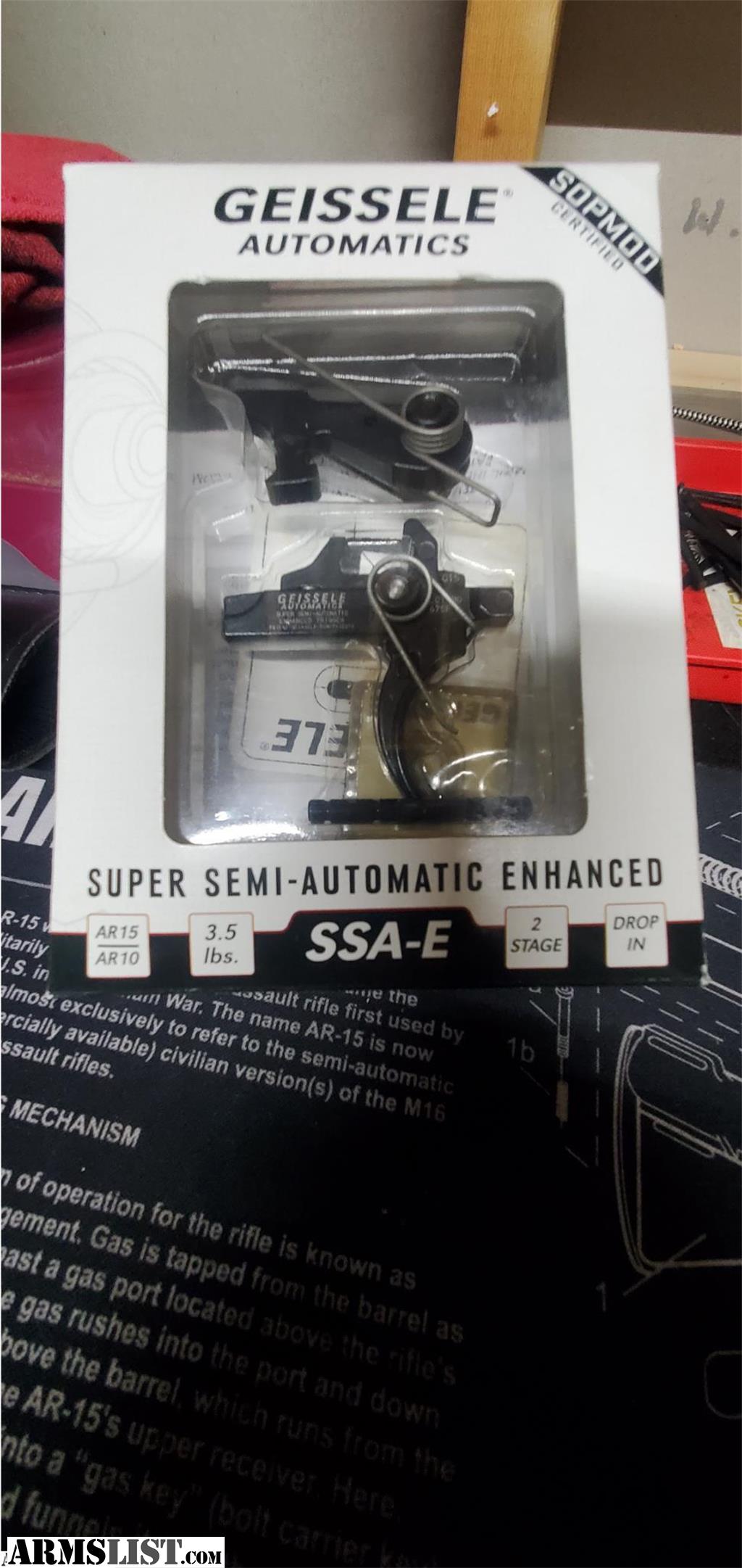 Selling my barely used Geissele trigger. I installed it in my AR 15 (easy install even for a novice) and shot less than 100 rounds. I am now selling the rifle and the new owner doesn't want the trigger.
