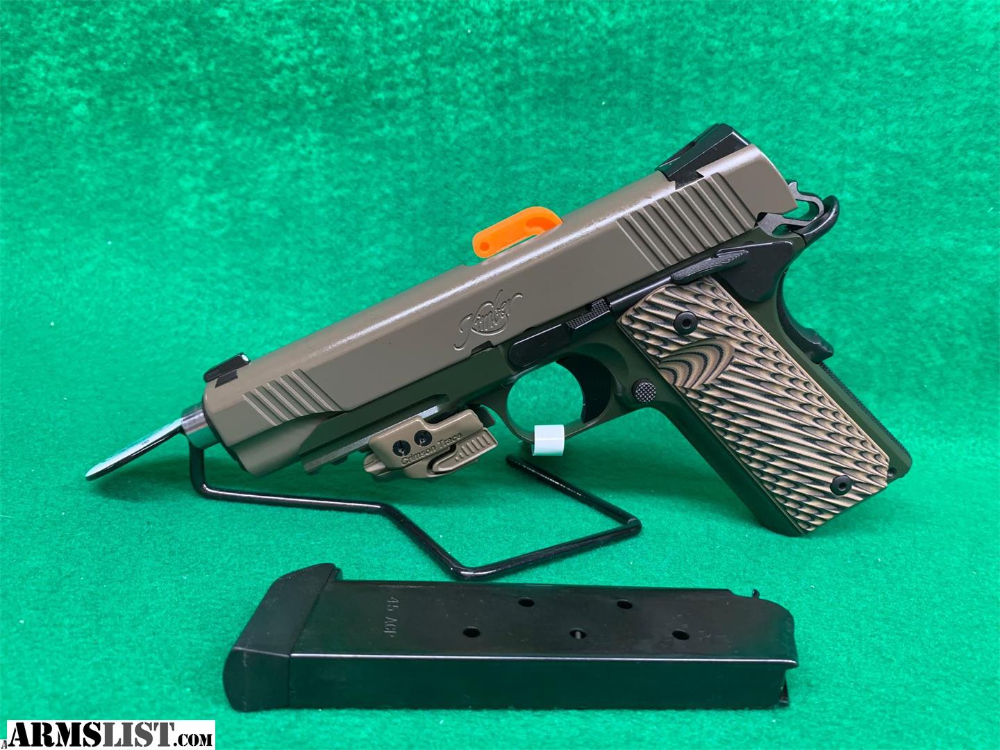 Kimber Warrior SOC 45ACP Pistol, Green/Tan, Crimson Trace Rail Laser, 5" Barrel, (1) Mag Pappy's Arms LLC pappys.arms@gmail.com 802-795-0054