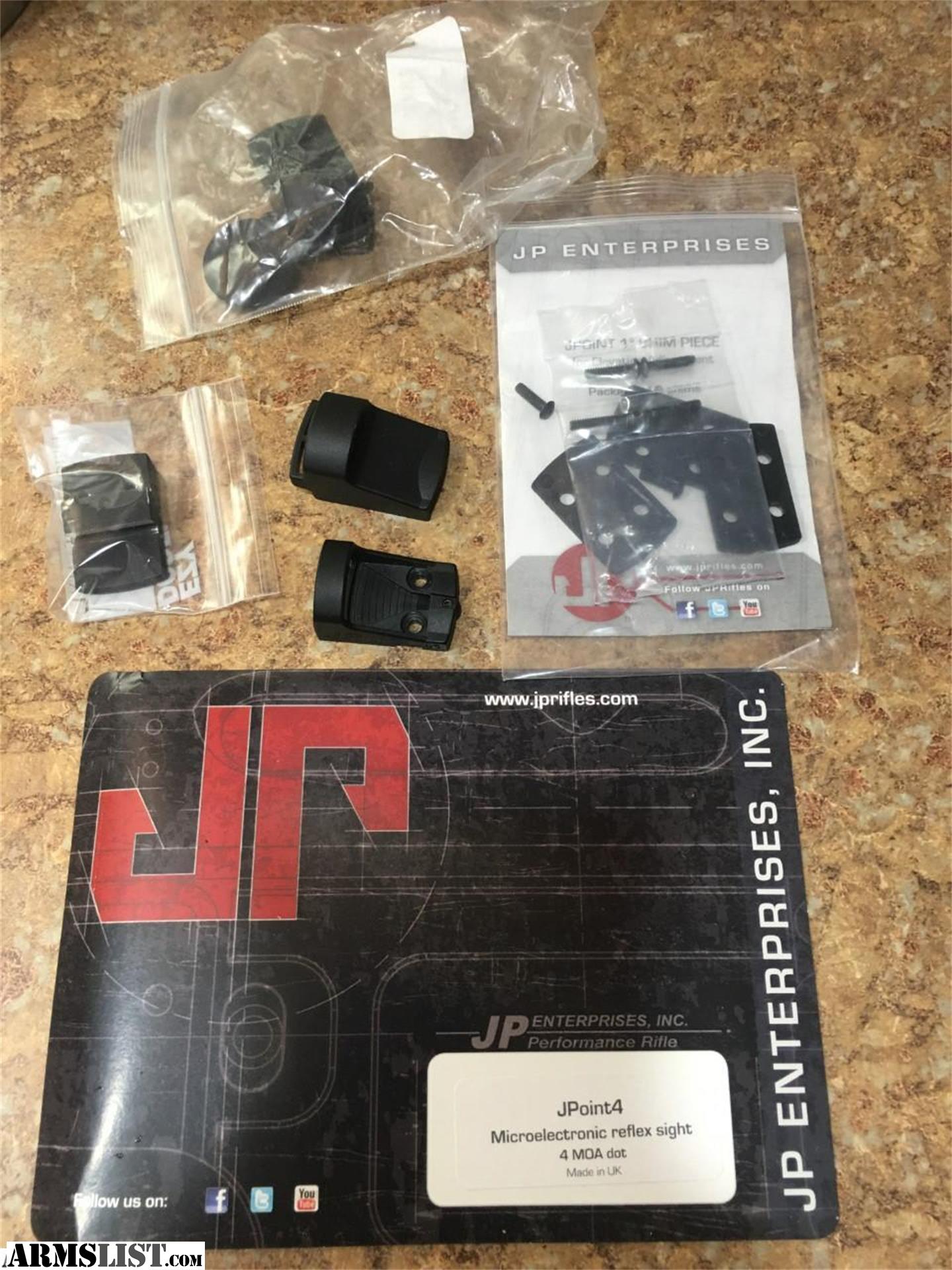 JP Enterprises JPoint 4 Microelectronic Reflex Sight 4 MOANever usedIncludes two covers,Novak Sight Cut mounting base JPA-NV5 Shim Piece Elevation Adjustment
