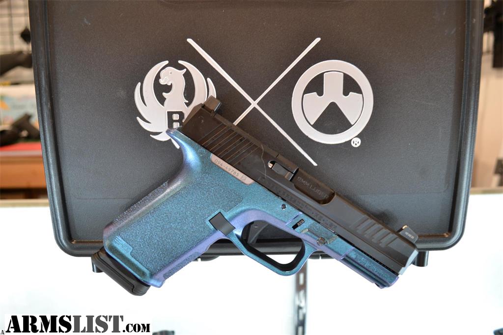 fIexibility and customization Major components designed to operate in Gen 3-type pistols and are compatible with many off-the-shelf holsters and accessories Low-profile, fared magazine well for quick and easy magazine insertion Trigger guard undercut and beaver tail that promote a high grip for better control Magazine release scallop for easy access Extended magazine catch and raised slide stop Optic ready slide - RMR, Delta Point Pro (DPP), and RMSc pattern optics Co-witness-height steel sights feature a tritium night front sight Striker-fired with a fIat-faced trigger, smooth trigger pull and tactile reset. Two Magpul PMAG 15 GL9 15-round magazines and co-branded plastic carry case Typhoon Cerakote Grip Module This item is brand new in box.