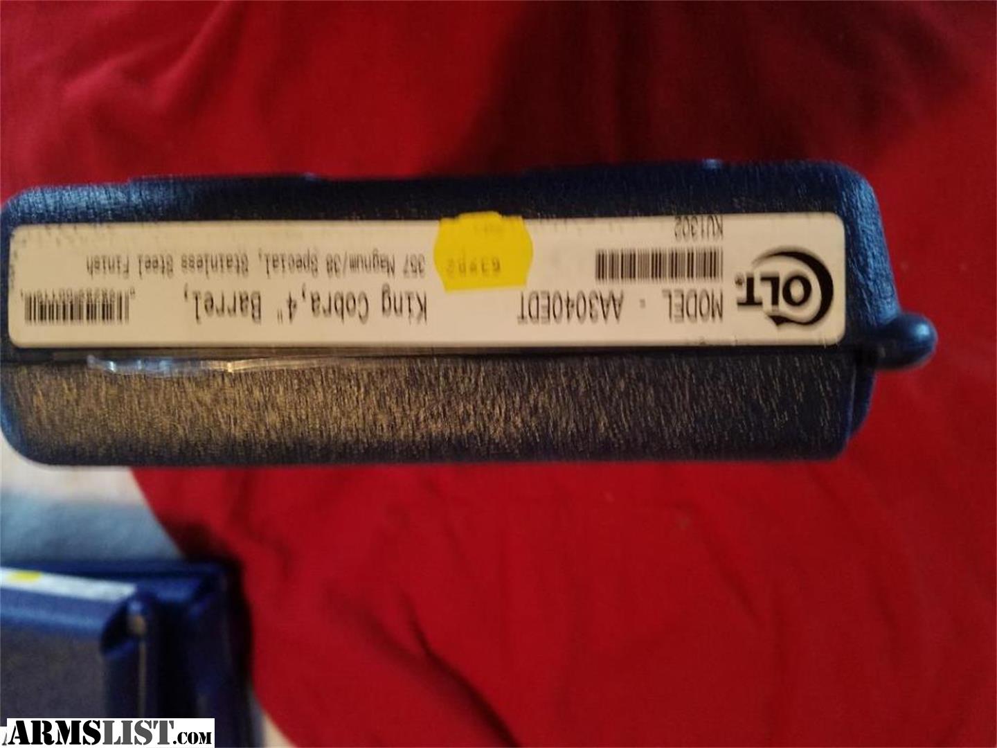 Blue King Cobra 4'', 1992 and 1998 SS King Cobra 4'': The blue has a light dragline, may have been fired, but very, very little retains 99.5% of Colt factory finish. Near new inside and out in blue carry case with paperwork. Accessories: case, manuals Barrel Length: $2800...4" Caliber/Bore: .357 Magnum. Blue King Cobra Paperwork: Serial Number: VK7738. SS K.C. is beautiful, comes with serialized box and all the goodies, 99.5% condition. $2200. If I don't reply within 24hr, it's probably a no. thx