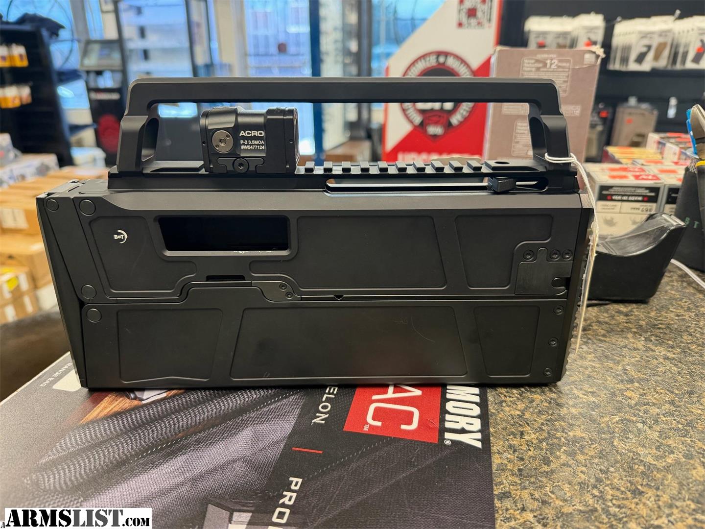 The all-new BWC9 is a folding personal defense chassis designed to be a compact, non-descript accessory that hides in plain sight. In its folded form, it can be carried using the integrated carry handle. Quick Specs