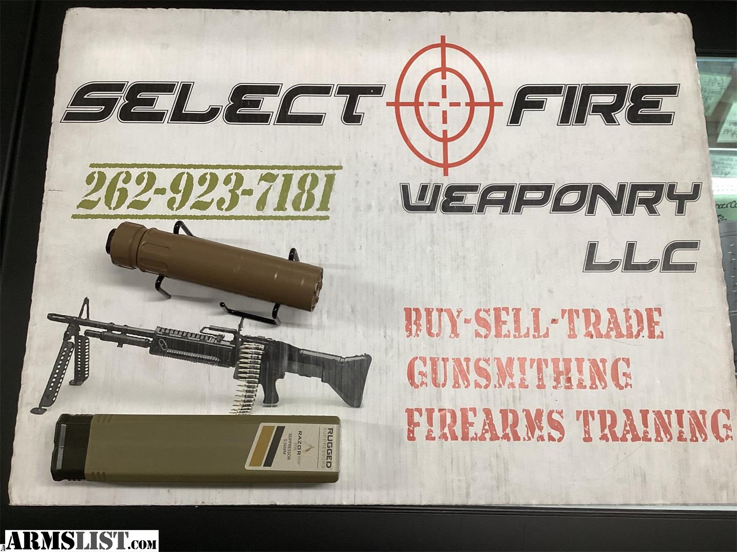 Due to the high volume of spammers, We will not respond to any Email over Armslist. Please call our store at 262-923-7181 shop or email us at sales@selectfireweaponry.com for the best assistance! We will ship guns! Stripped Receivers - $19.99 Complete Lowers $29.99 Silencers $29.99 Handguns $39.99 Long Guns $49.99 AR Pistol/SBR/ETC.. $49.99 MG POR WE BUY GUNS! Large estates or individual pieces. We buy Machine Guns! Our store is located between Bluemound road and and Moreland blvd off of Parklawn Drive in Waukesha, just off of I-94! We buy, sell, and trade all types of firearms and accessories. Our shelves are stocked with around 1500 guns of all different varieties. We stock the widest variety of NFA items such as silencers, SBR's, SBS's, AOW's, and transferable machine guns. We buy guns! Including machine guns! Our Armslist listings do not reflect everything we have in stock! Please come in to check out our full inventory of firearms, ammo, and silencers. -All Prices posted posted are Firm. -All NFA item prices DO NOT reflect cost of NFA tax stamp -All buyers must pass a background check before the transfer is to occur. -All in state purchases are subject to 5% sales tax. -All handgun prices do not reflect the $12 state background check fee. -All sales are final no refunds or exchanges. -Original purchase price and background check fees are none refundable. -All firearms must be picked up with in 30 days of purchase or any down-payment will be lost. -All RED tag firearms are consignment and will have a 3% credit card fee Every thing we post is physically in stock at the time we post it. Every once in a while we sell something posted on here and it doesn't get deleted that instant, we do our best, dont get mad. When in doubt call first before driving. Call us or Stop in and check us out! Select Fire Weaponry 2325 Parklawn dr Ste. A Waukesha, WI 53186 262-923-7181 Mon-Fri 10:00-6:00 Sat 10:00-4:00 Closed Sun