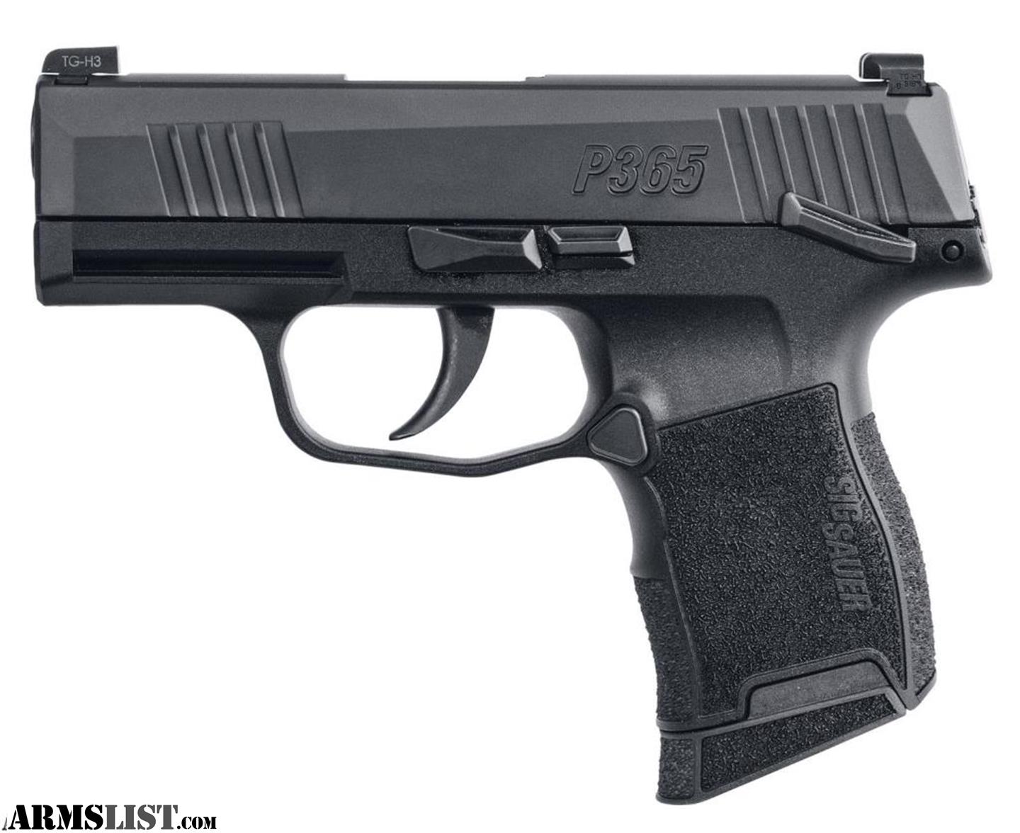 Sig's pistols are engineered to perform anywhere, at any time, and under any circumstance. They boast unique, advanced features that stand out among the rest. The P365 high-capacity, micro-compact pistol is a revolutionary concealed carry that gives you more capacity, concealability and capability. It is striker-fired, with a nitron finished stainless steel frame and slide, and has a polymer grip. The proprietary magazine design allows for a 10 round capacity in both the flush fit and extended grip sizes. The P365 is rated for +P ammunition and comes with one flush and extended magazine. This model has black finish, manual safety, and X-Ray3 day/night sights.