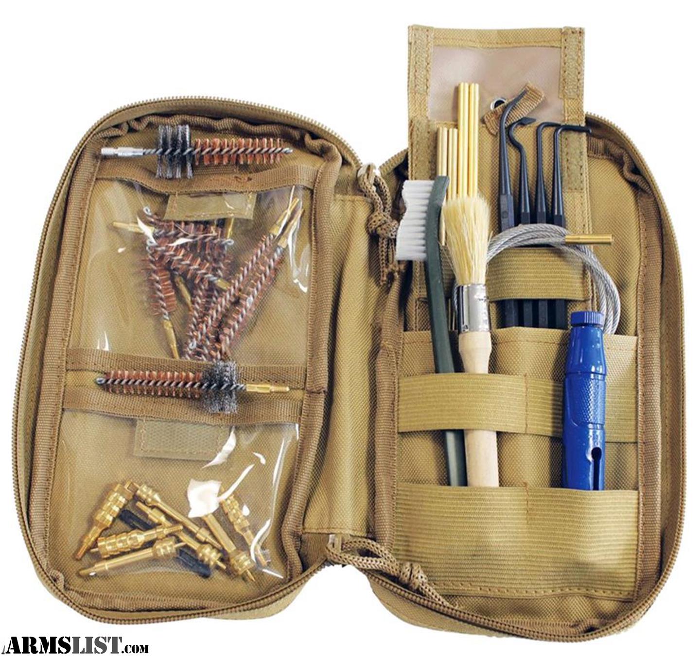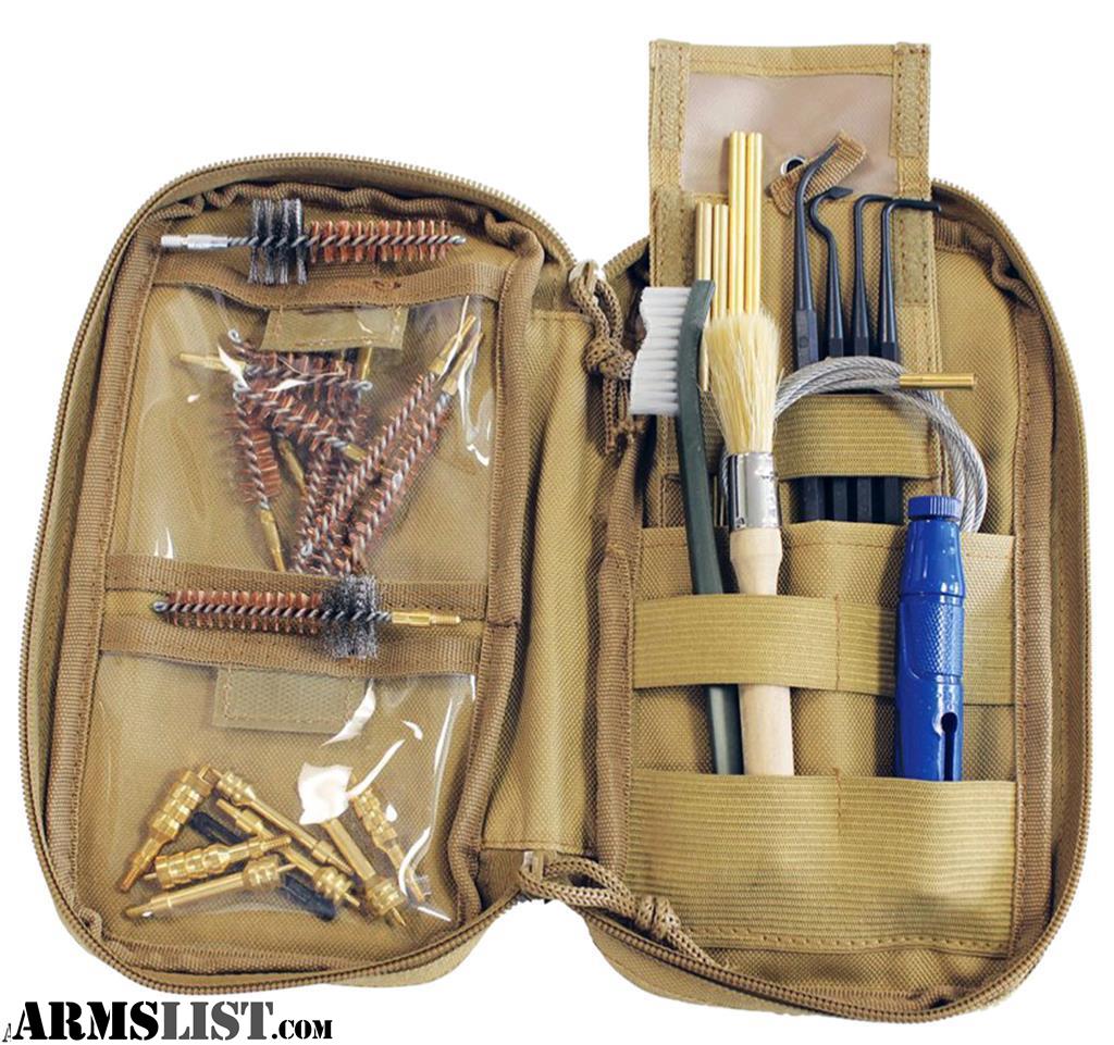 This kit includes: 1 pull through cable, 7 bore brushes, 7 cleaning jags, 1 patch holder, 4 cleaning picks, 4 brass cleaning rod sections, 1 cleaning rod/pull through cable handle, 1 utility brush, 1 cleaning brush, and 2 chamber brushes (.223/5.56 and .308/7.62).