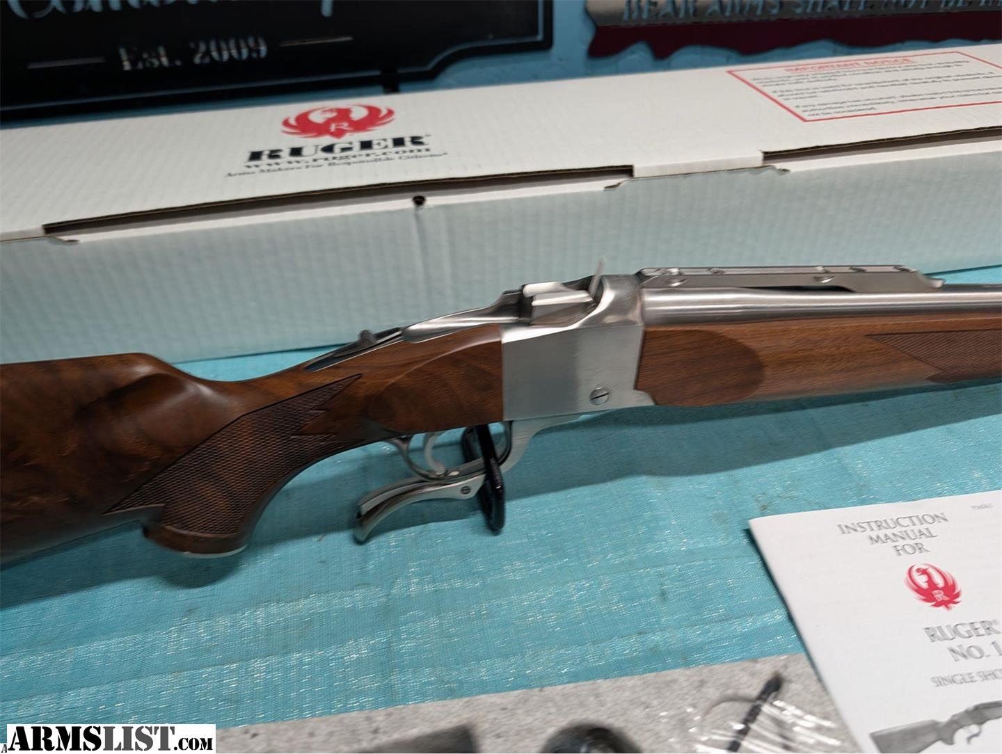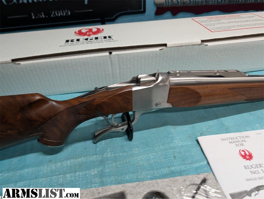 Hard to get NEW Stainless/Walnut Ruger No.1 in 300 PRC. Beautiful high grade maple stock with a 24" sporter barrel.
