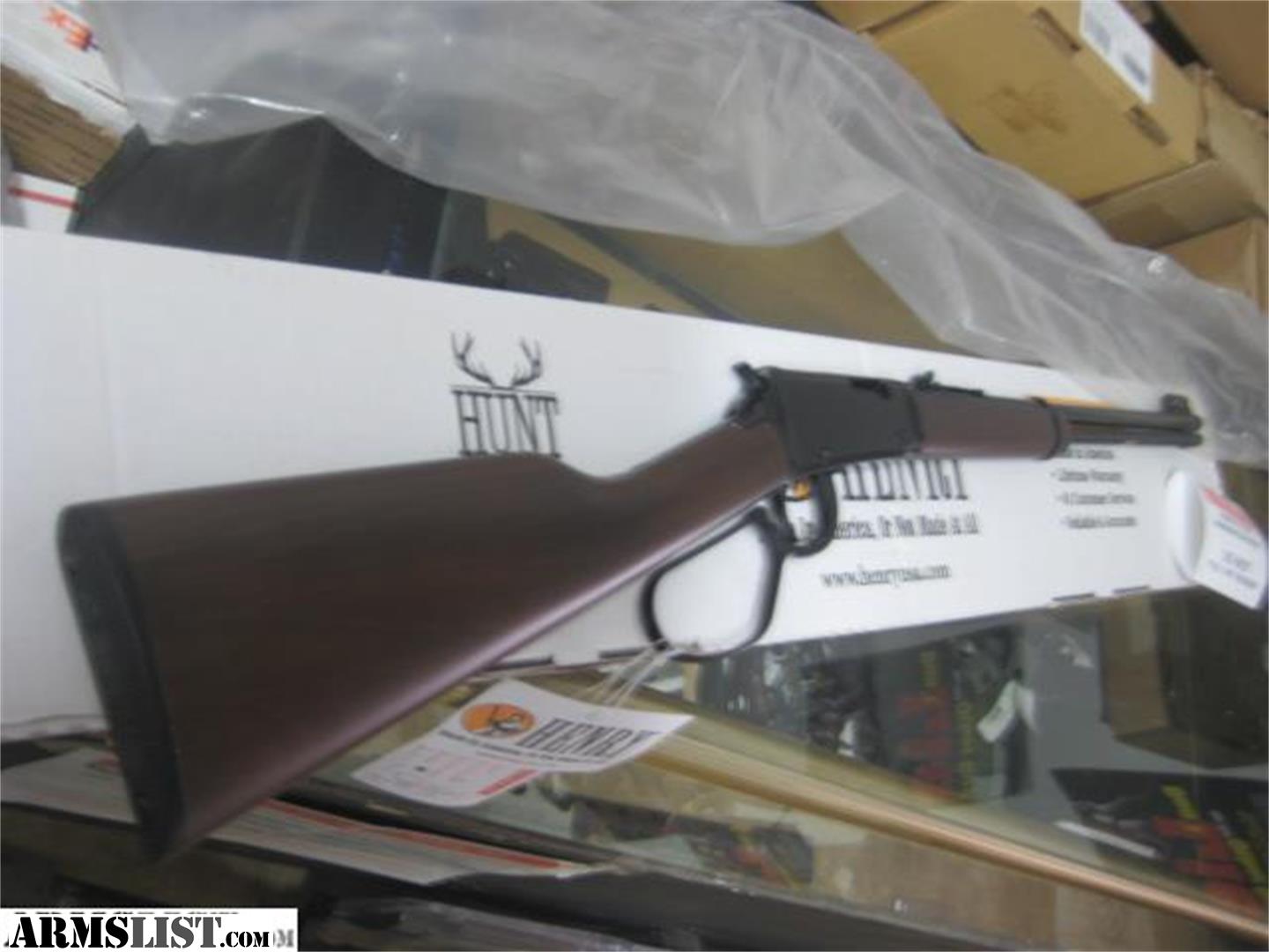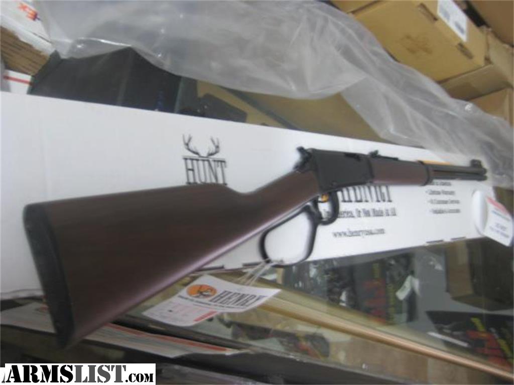 Henry Repeating Arms, Large Loop lever action 22LR rifle, full size adult model. Fires low cost 22LR ammo, will even fire long and shorts. Very nice rifle, made in New Jersey, east coast USA. Henry manufacturing says " made in America, or not made at all". Pay a little extra, own something that can last a lifetime and a great family keepsake. The Henry Lever Action is a classic Western style lever action rifle, and one of the most popular .22's on the market today. It features an extremely attractive American walnut stock, the quality of which can only be found on guns three times the price. The action is exceptionally smooth, so smooth many first timers remark that they cannot believe the rifle has any internal parts. You simply have to get one into your own two hands and cycle the action a few times to see for yourself. Action: Lever Action Caliber: 22 Short/Long/Long Rifle Capacity: 12 LR/17 Short Finish: Blued Stock: Walnut Trigger: Single-Stage Barrel Length: 16.1" Overall Length: 34”