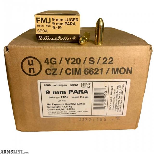 Sellier & Bellot S&B 9mm Luger 115 Gr. FMJ 1,000 Rd. Case